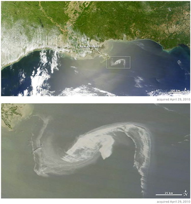 Chemical dispersants: About 100,000 gallons of chemical dispersant has been dropped from the air into the Gulf, where it breaks up the oil slick into smaller droplets. The droplets then get mixed into the water, where they are subjected to ocean currents and natural degradation processes, according to the Minerals Management Service (MMS). “This potentially exposes the water column and near shore shallow bottom-dwelling organisms to oil,” according to MMS.