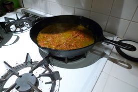 Pete used a jar of roasted tomatoes I jarred last summer, garlic, white wine, lemon zest and fresh herbs from our backyard to fashion an expert sauce that bubbled in a cast iron pan while he brought a large pot of salted water to a boil. One batch of pasta dough makes more than we will eat for dinner, so we put three dozen ravioli onto floured parchment and froze it for another time. Pete boiled the ravioli until the pasta was tender. We tasted one and were thrilled, so Pete drained the ravioli and tossed them into the sauce before plating. Pete took pictures. Then we ate and made nom nom nom noises.