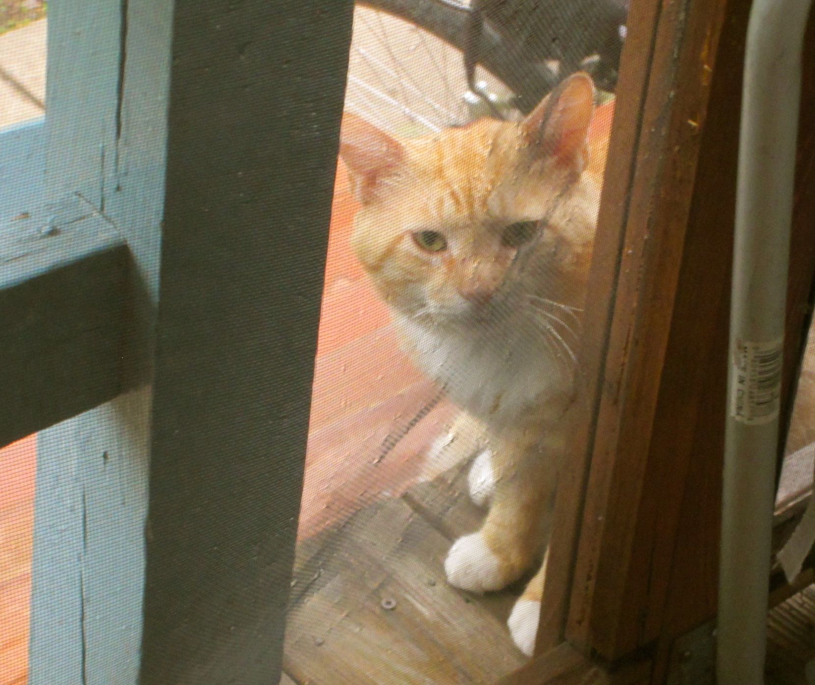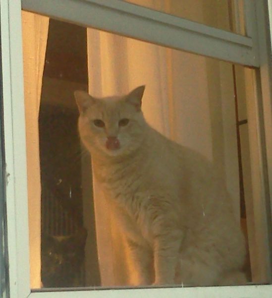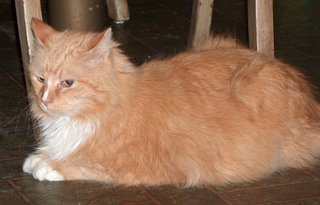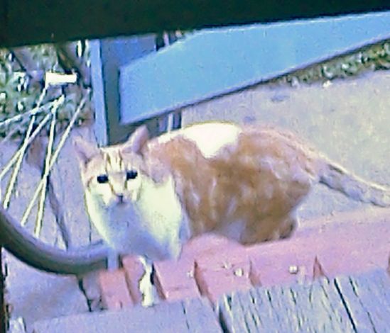This is Cream, who lay on the porch last week. After I took this picture, I misplaced the camera for a couple of days. Meow meow crap meow!