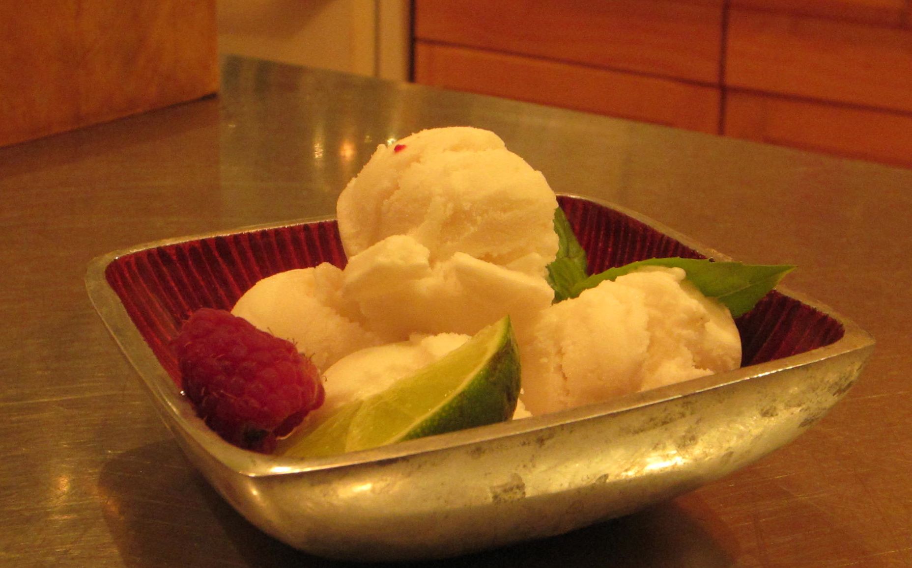 I suggested raspberries. Pete said no. I said grilled pineapple. Pete said maybe. As I watched Pete out the coconut mixture into the ice cream machine, I realized the coconut cream didn’t belong there and the texture without it was probably pretty good. Pete added Amaretto di Saronno and brought me a taste. I almost could not believe my mouth. It was unbelievable, even for my mouth.