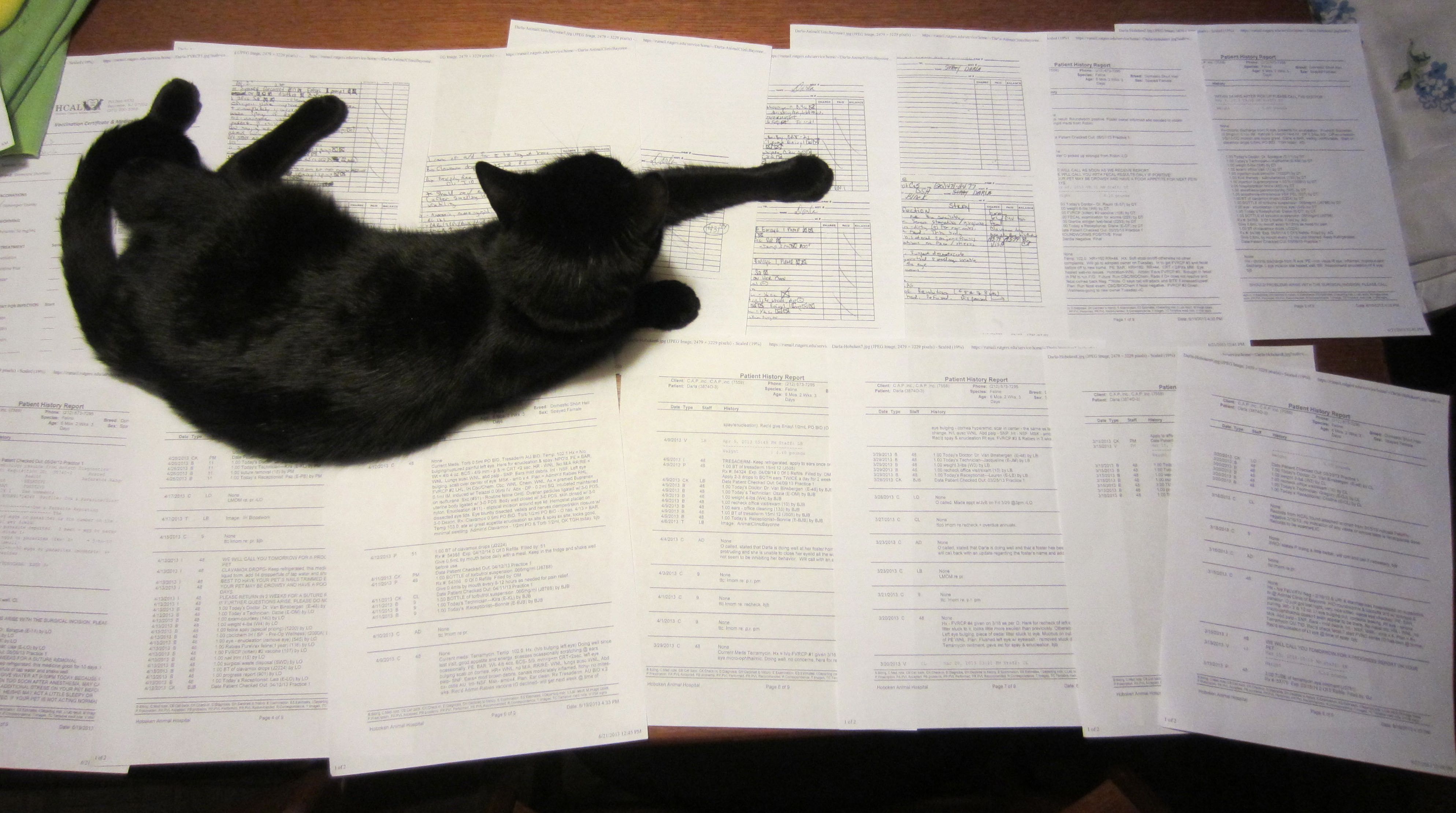 Tonight, we moved the kitten’s litter box from the kitchen to the attic, which we refer to as the cats’ room, but we pretend not to know it’s also the lab where they’re building robots. We wink when the mailman delivers parts. We know exactly where to look for missing screwdrivers and small power tools. Cross your fingers: Topaz will soften and we’ll find kitten-size lab coats in the hamper.