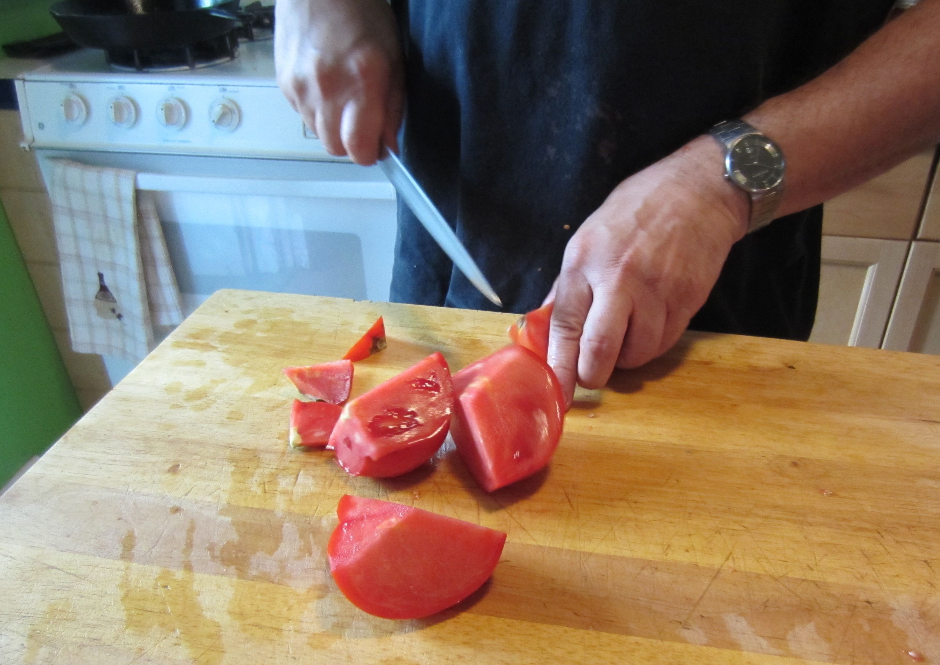Heirloom tomatoes roasted with olive oil and salt on the left; roasted red tomatoes with olive oil and salt. We jar whole tomatoes from organic farm girls who humor me about my unusual art supplies.