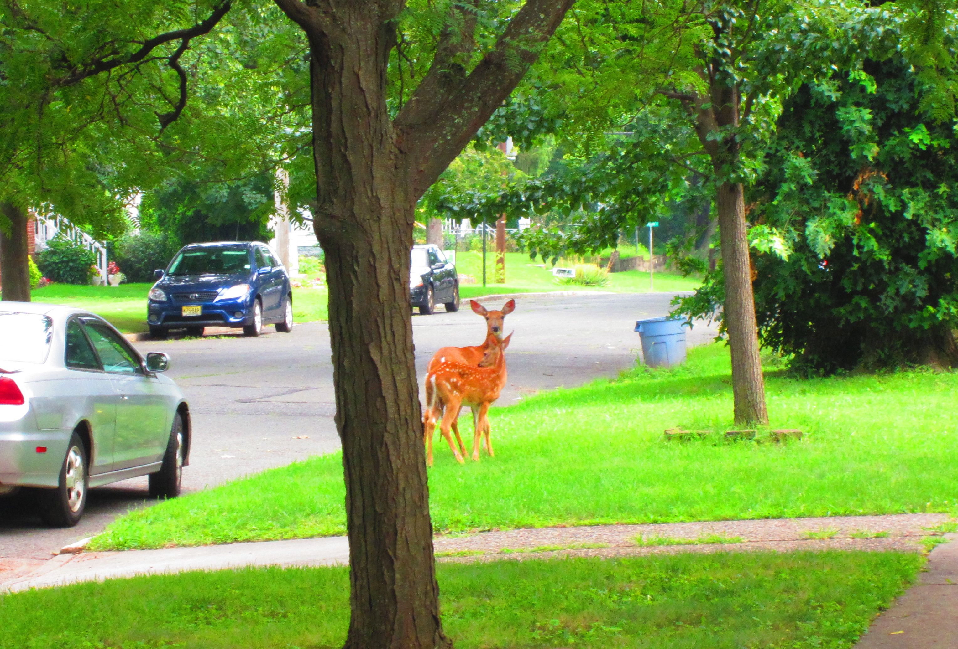 The fawn ran from us and toward us, over and over, and could not figure out how to get out. I was afraid it would try to leap the fence, but it didn’t. I hesitated. The doe stood on our side of the street, two yards down, with the other fawn. I thought, ‘I have to do something here before something very bad happens,’ but I had no idea what it would be.