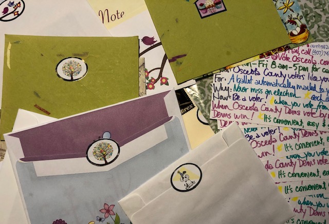 Yep, still writing for Postcards For Voters on another Vote By Mail campaign for Florida. I love those. The writing goes slowly, but the hand cramps are worth it. A few months back, I saw statistics about how Florida Democrats were enrolling in Vote By Mail in droves. Hopefully, the pandemic provided a big hint about how mailing in a ballot might be safer than turning up to vote with hundreds of your closest friends, but you never know.