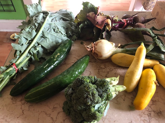 Pete, a chef, regards most vegetables on his plate as personal insults. What are they doing there, taking up valuable space where spaghetti could be? No one knows! You may think I am exaggerating, but no. As I laid this fresh haul on the counter last Friday, I could see immediately Pete would never touch summer squash, kale would be a struggle and cucumbers would require some careful planning. I love summer squash. I sauteed it with butter and sliced onions and froze it for winter, when these flavors will remind me of hot sun and bare feet. I peeled and sliced the cucumbers with some onions and quick pickled them with sugar, gentle spices and apple cider vinegar. After 24 hours, they were ready to taste. Another cucumber from last week’s CSA became creamy tzatziki sauce. This afternoon, I piled pickled onion slices on a lengua taco and was insufferably pleased with my handiwork. Tomorrow, I will trim the kale and simmer it gently for a long time with some salt pork, as I would collards. If that sits on a plate next to a delicious protein, Pete will eat that and feel virtuous describing it to his doctor.