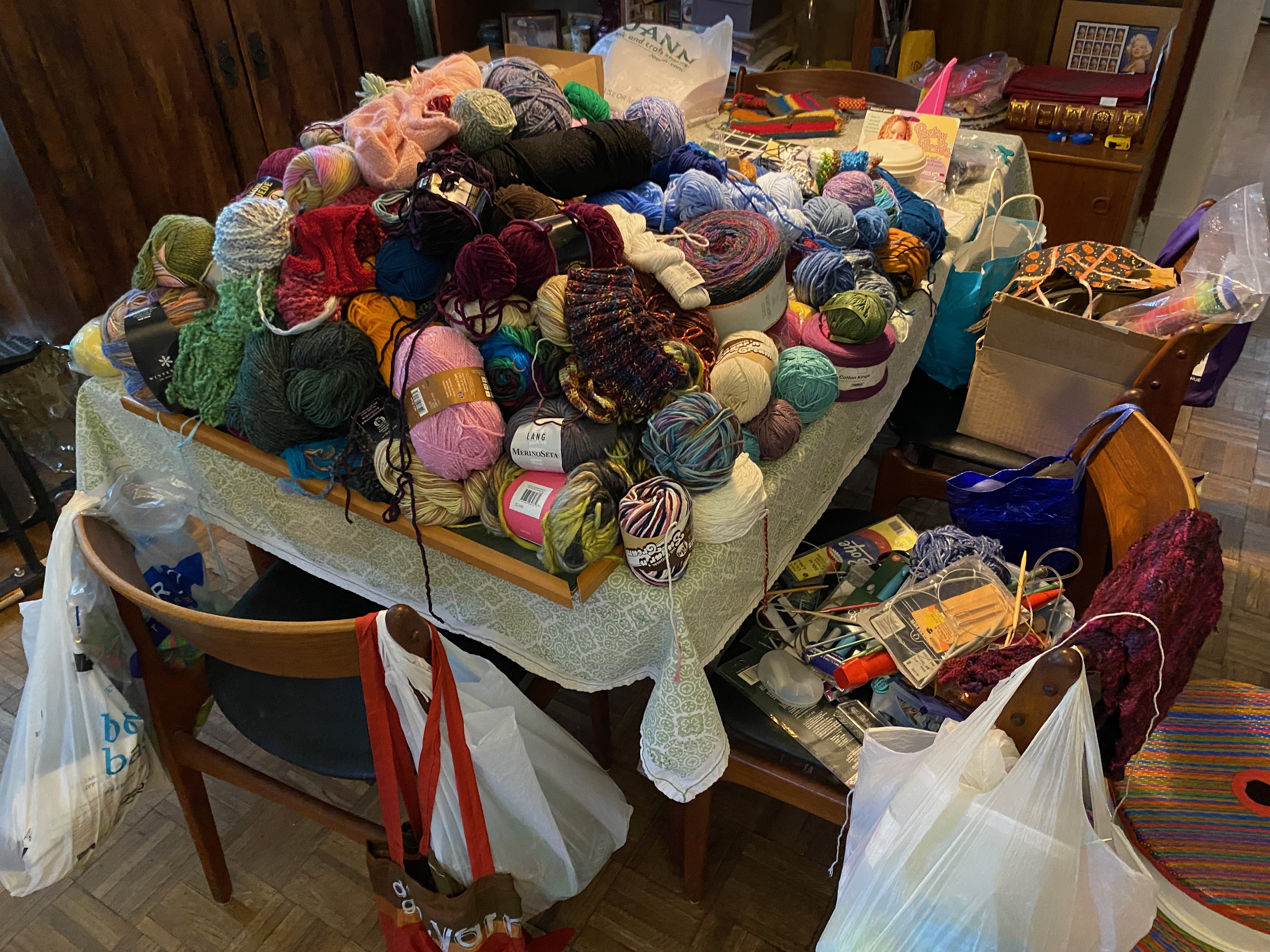 Along the way, I stopped providing annual reports because I couldn’t keep count anymore and wasn’t exactly sure what year it was. Writing checks was hell. When I produced enough blankets that the craft room was uncomfortably full, I bagged up blankets and drove to a shelter. A year ago, my oldest friend Trout died, and her yarn arrived at my house in waves as her partner sorted through her possessions. My dear friend Lala took a lot of yarn for other projects, and we gave away a lot to local stitchers, and there was still so much yarn because stitchers have plans, and death is inconvenient.