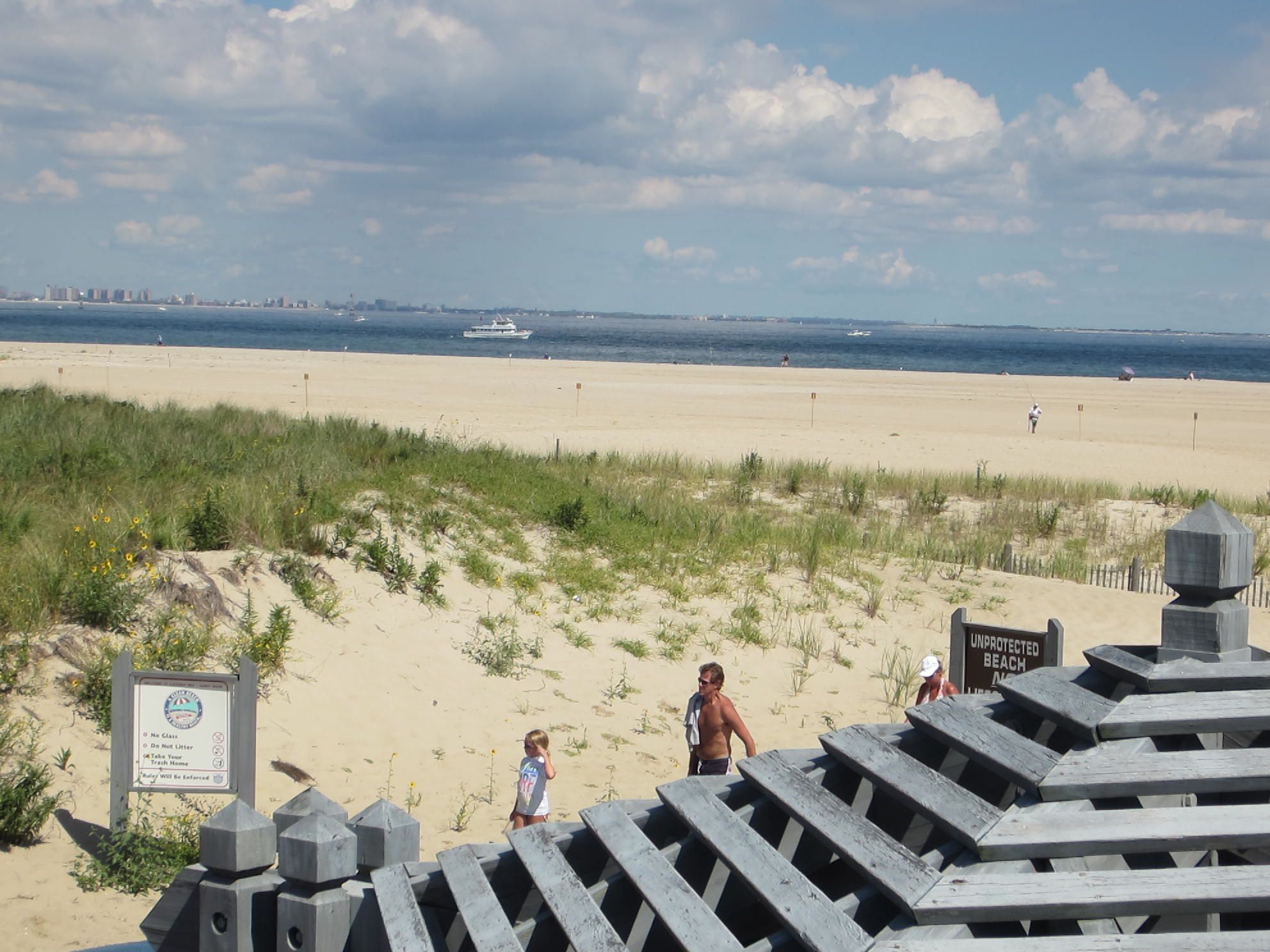 The tourists are gone, which means tourists like us arrived at Sandy Hook this weekend. I’ve been waiting for this weekend since it turned cold last winter. Pete and I drove down to the park, rode like Jehu to this snack bar/rest stop/unprotected beach and sat on the roof for small snacks and lots of fluids. I was actually as happy as I have ever been in my entire life. If someone calls you on the phone and says, “For $10,000, Jed, do cream cheese, dried cherries and fresh basil make a good sandwich?” Well then. You say yes.